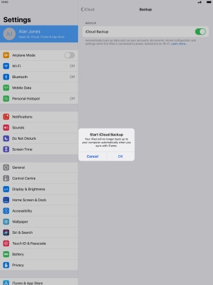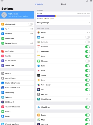 Back up the memory on your Apple iPad Pro 12.9 (2015) iPadOS 13.2 to iCloud