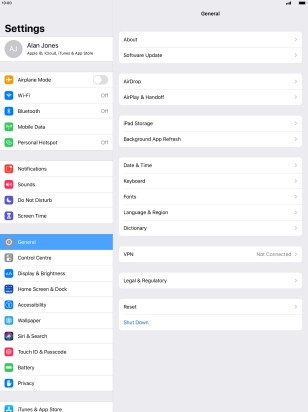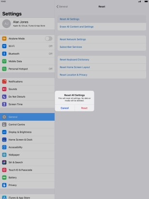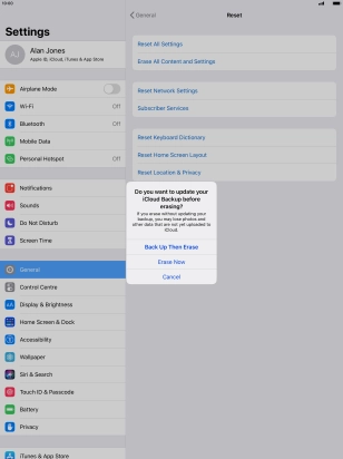 Key in the password for your Apple ID and press Erase. Wait a moment while the factory default settings are restored. Follow the instructions on the screen to set up your tablet and prepare it for use.