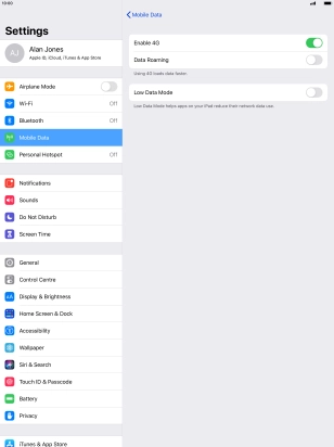 Turn data roaming on your Apple iPad Pro 12.9 (2015) iPadOS 13.2 on or off