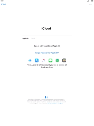 Press the field next to "Apple ID" and key in the username for your Apple ID.