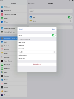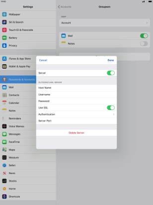 Press Password and key in the password for your email account. Please note that if you're using Vodafone's outgoing server, leave the password field empty.