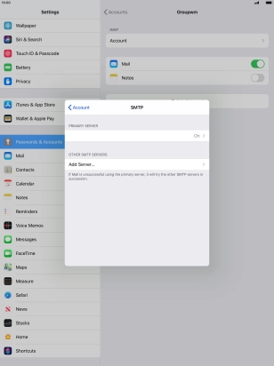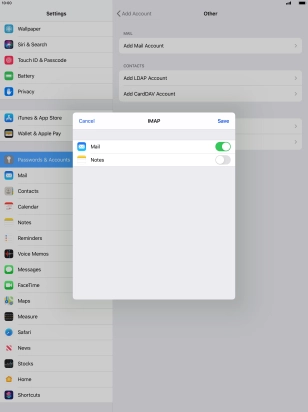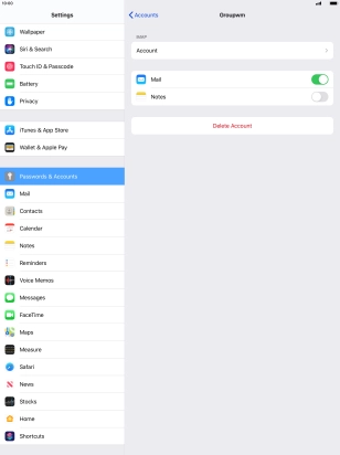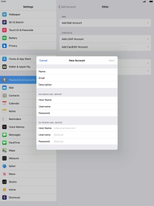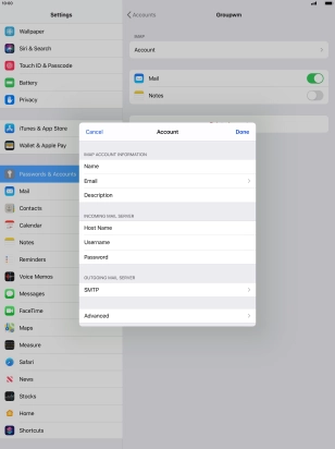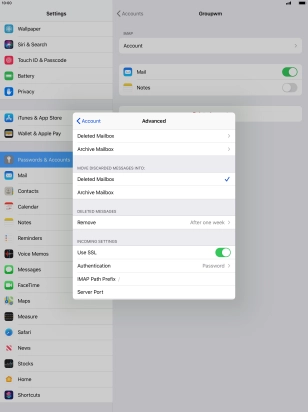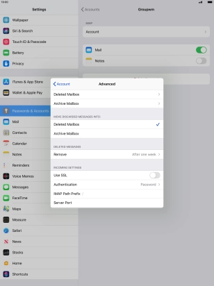 Press the required email account and follow the instructions on the screen to select settings for the specific account.