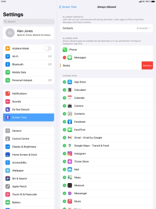 Press the remove icon next to the required app to remove it from the list of allowed apps during Downtime.