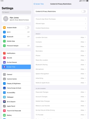 Press the indicator next to "Content & Privacy Restrictions" and follow the instructions on the screen to select settings for content and privacy restrictions.
