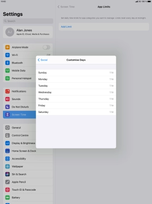 5. Select days for time limits of app usage