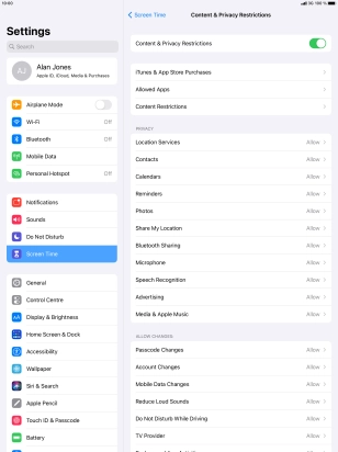 10. Select settings for content and restrictions