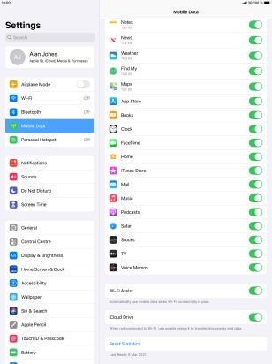 Turn Wi-Fi Assist on your Apple iPad Pro 12.9 (2015) iPadOS 14.4 on or off