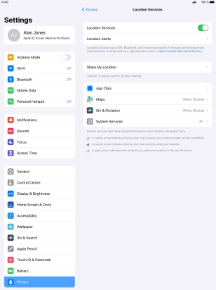 Turn GPS on your Apple iPad Pro 12.9 (2015) iPadOS 15.3 on or off