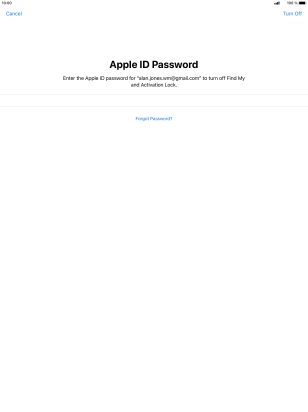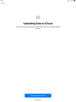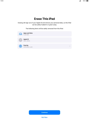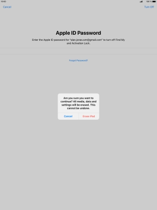Key in the password for your Apple ID and press Erase iPad. Wait a moment while the factory default settings are restored. Follow the instructions on the screen to set up your tablet and prepare it for use.