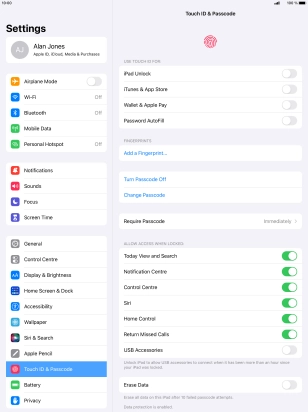Turn use of lock code on your Apple iPad Pro 12.9 (2015) iPadOS 15.3 on or off