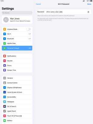 2. Key in the password for personal hotspot