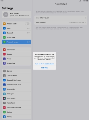 If Wi-Fi is turned on, press Wi-Fi and USB Only.