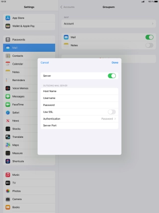 Press Username and key in the username for your email account. Please note that if you're using Vodafone's outgoing server, leave the username field empty.