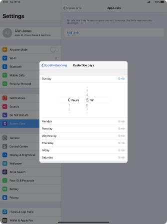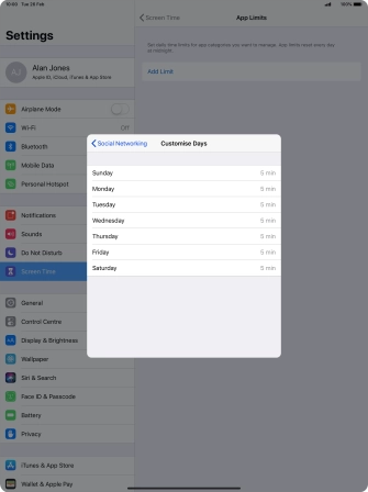 5. Select days for time limits of app usage