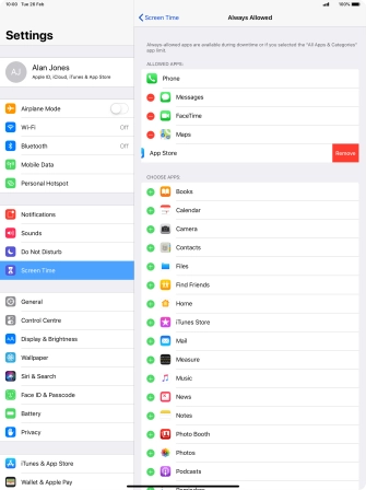 Press the remove icon next to the required app to remove it from the list of allowed apps during Downtime.