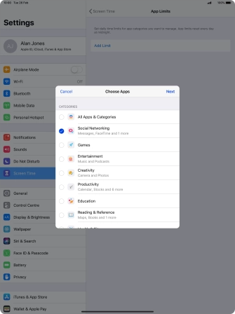 4. Select time limits for app usage