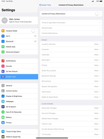 Press Content & Privacy Restrictions.