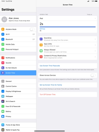 Press Set Up Screen Time for Family and follow the instructions on the screen to select family Screen Time settings.