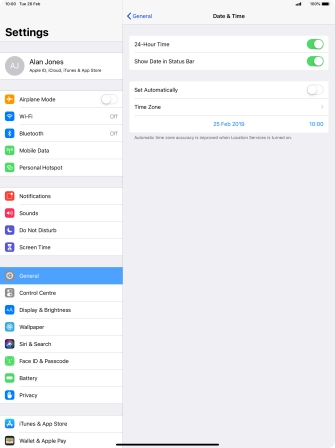 Set date and time on your Apple iPad Pro 12.9 (2018) iOS 12.1