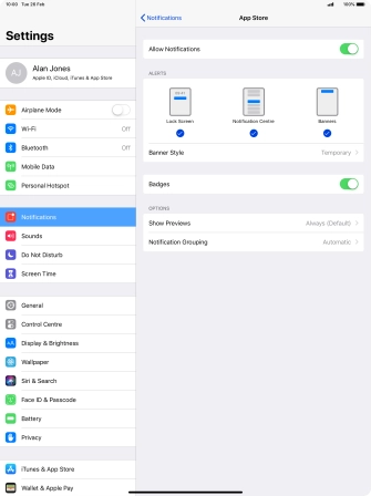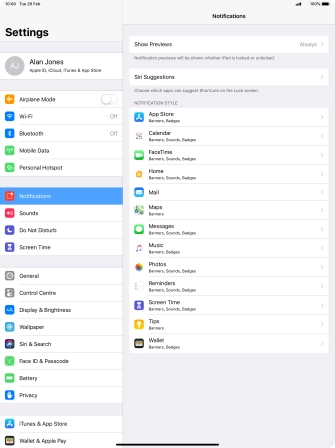 To select notification preview only when your tablet is unlocked, press When Unlocked.