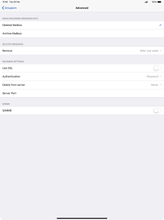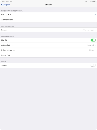 Press the required email account and follow the instructions on the screen to select settings for the specific account.