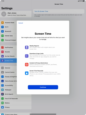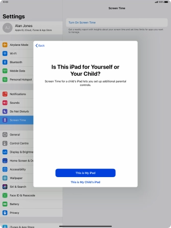 Select Screen Time settings on your Apple iPad Pro 12.9 (2020) iPadOS 13.4