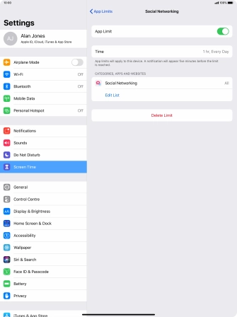 Using Screen Time you can get an overview of how much you use your tablet and set time limits on the use of selected apps.