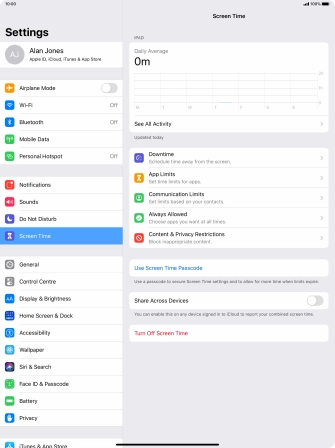 Press Turn Off Screen Time.