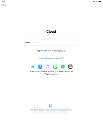 Press the field next to "Apple ID" and key in the username for your Apple ID.