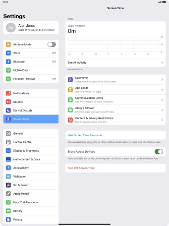Press the indicator next to "Share Across Devices" and follow the instructions on the screen to turn total Screen Time across all of your devices on or off.