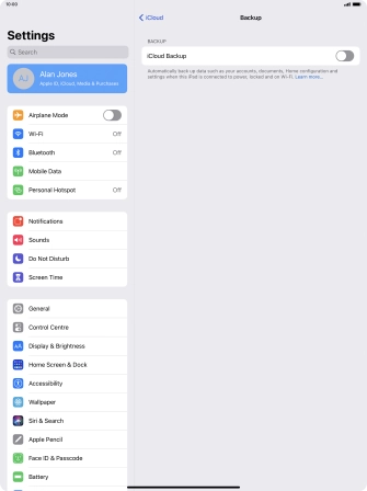 Press iCloud Backup.