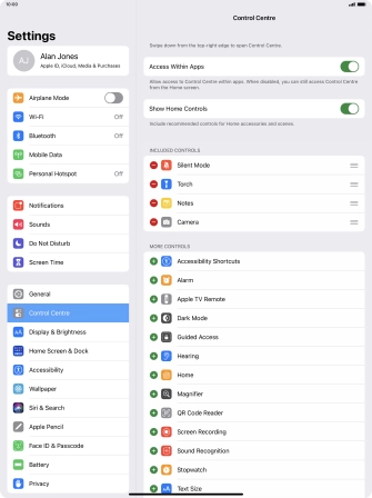 Press the move icon next to the required function and drag it to the required position in Control Centre.