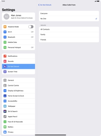 Press the required setting to select which contacts can call you even though Do Not Disturb is turned on.