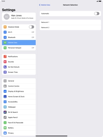 Press the indicator next to "Automatic" to turn automatic network selection on or off.