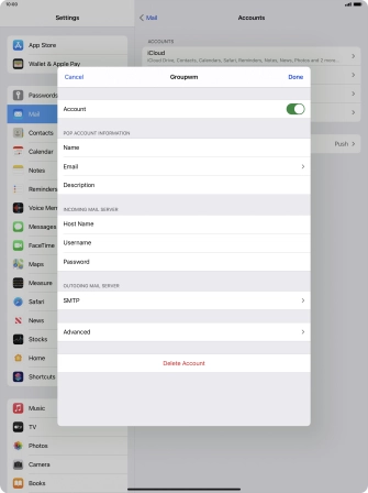 Set up your Apple iPad Pro 12.9 (2020) iPadOS 14.0 for POP3 email