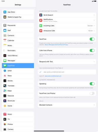 Press the required setting below "YOU CAN BE REACHED BY FACETIME AT".