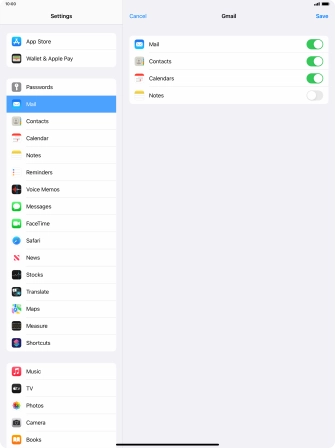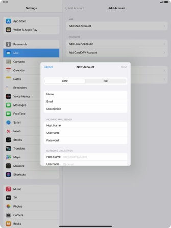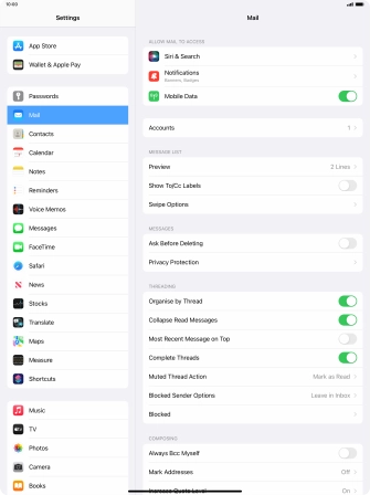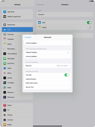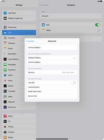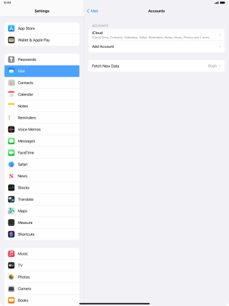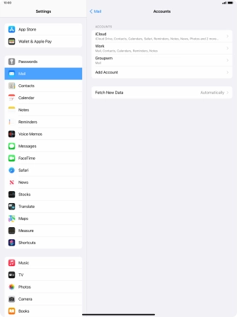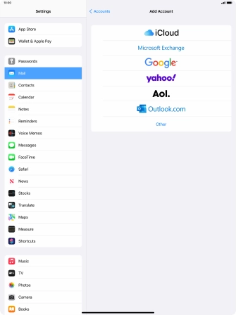 Press the required email account and follow the instructions on the screen to select settings for the specific account.