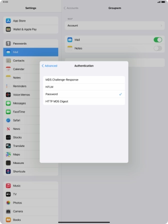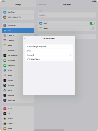 Press Password and key in the password for your email account.