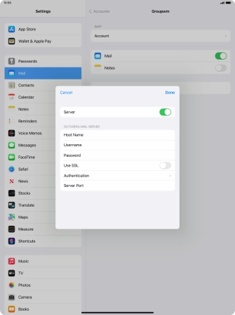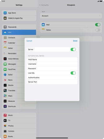 Press Password and key in the password for your email account. Please note that if you're using Vodafone's outgoing server, leave the password field empty.