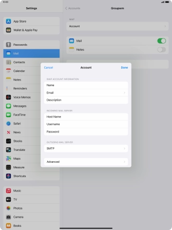 Press Username and key in the username for your email account.