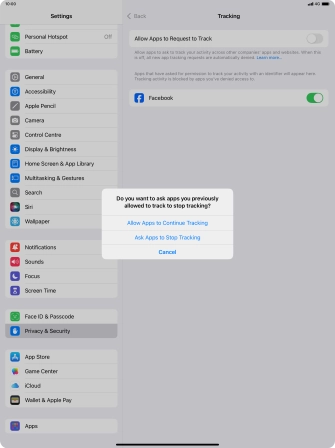 Turn tracking request for downloaded apps on your Apple iPad Pro 12.9 (2020) iPadOS 18 on or off