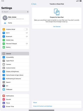 Key in the password for your Apple ID and press Turn Off. Wait a moment while the factory default settings are restored. Follow the instructions on the screen to set up your tablet and prepare it for use.