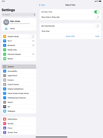 Set date and time on your Apple iPad Pro 12.9 (2020) iPadOS 18
