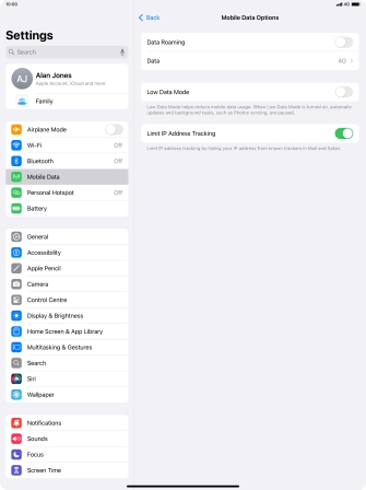 Press the indicator next to "Low Data Mode" to turn the function on or off.