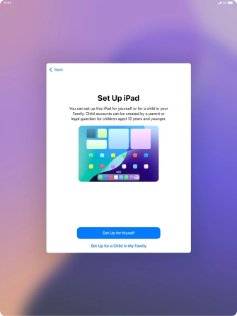 If your tablet will be used by a child below the age of 13, follow the instructions on the screen to set up an Apple ID for the child.
