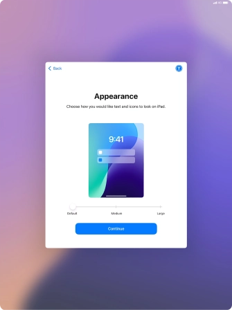 Select the required text and icon size on your tablet and press Continue.