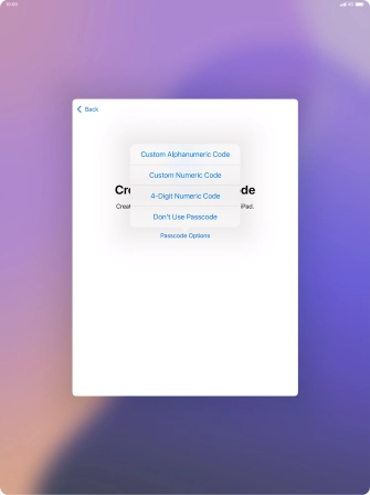 Follow the instructions on the screen to turn on use of lock code or press Don't Use Passcode.