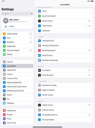 You can select different settings for tablet interaction control, e.g. AssistiveTouch, Voice Control and Eye Tracking making it easier to navigate your tablet.