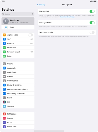 Select settings for Find My iPad on your Apple iPad Pro 12.9 (2020) iPadOS 18