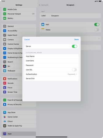 Press Password and key in the password for your email account. Please note that if you're using Vodafone's outgoing server, leave the password field empty.